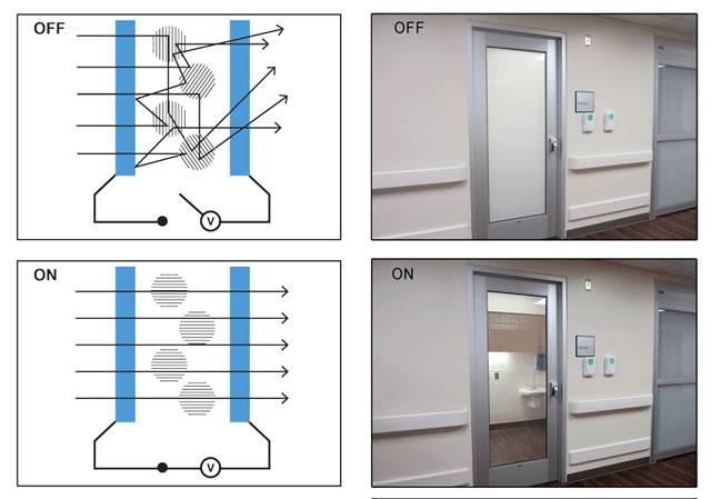 ▲ 當(dāng)通電時(shí),玻璃會(huì)變成透明狀,可以清晰地看到玻璃后面的情況。